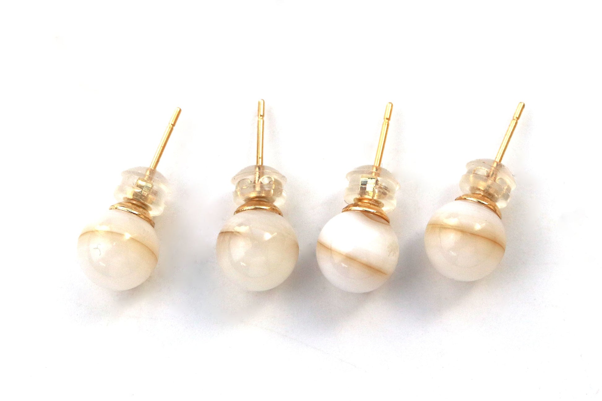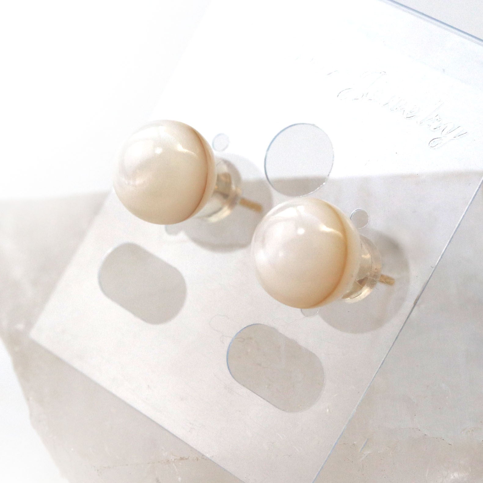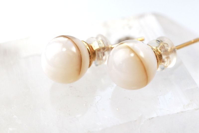 ピアス シェル <日本産> 約8mm ベージュホワイト ステンレス ゴールド 日本製 [ac-g2054]
