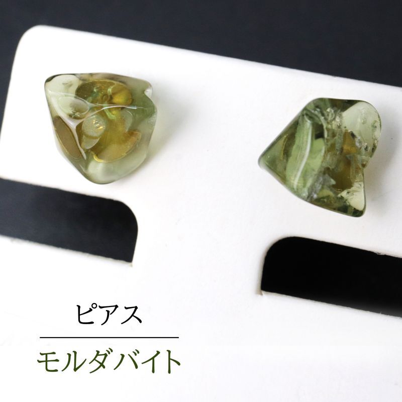 ピアス モルダバイト <チェコ産> 突き刺し型 ステンレス 日本製 [ac-g2088]