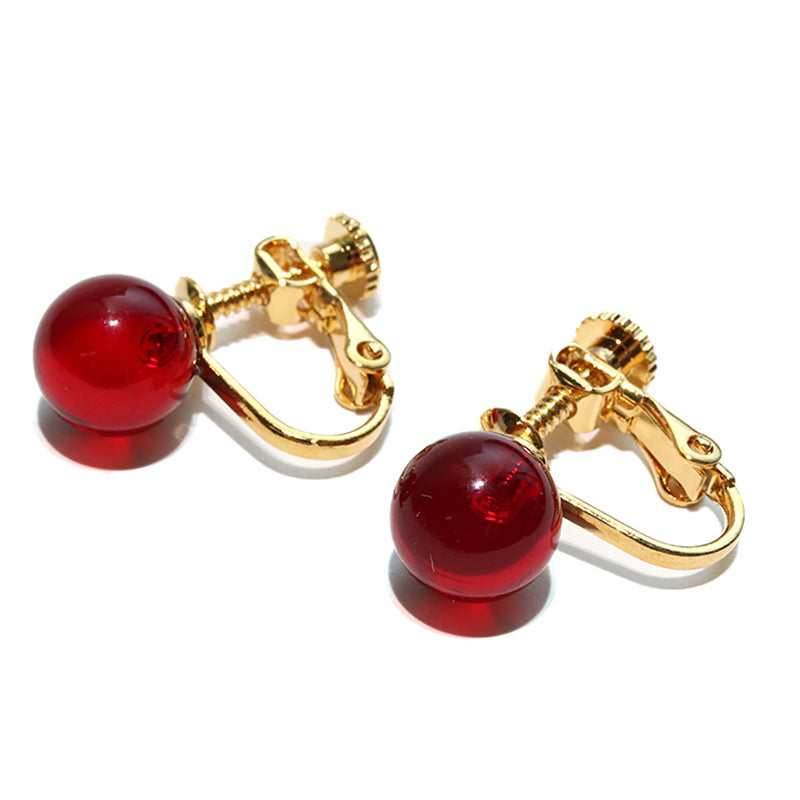 イヤリング ルビーアンバー<リトアニア/バルト海産> ネジバネ式 ステンレス 日本製 [ac-g2129]