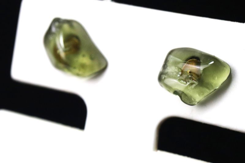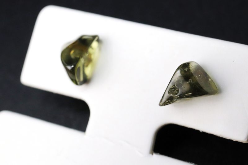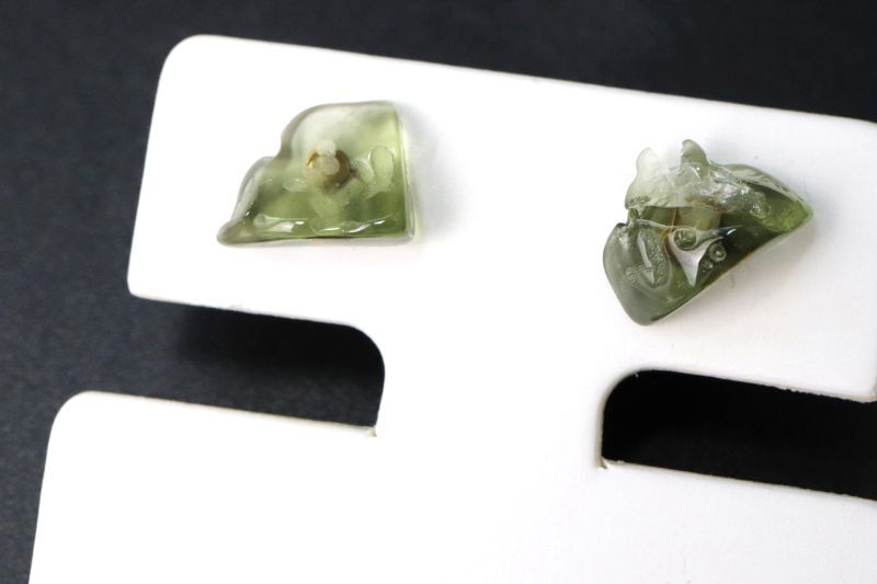 チェコ産のモルダバイトの突き刺し型のピアスです。