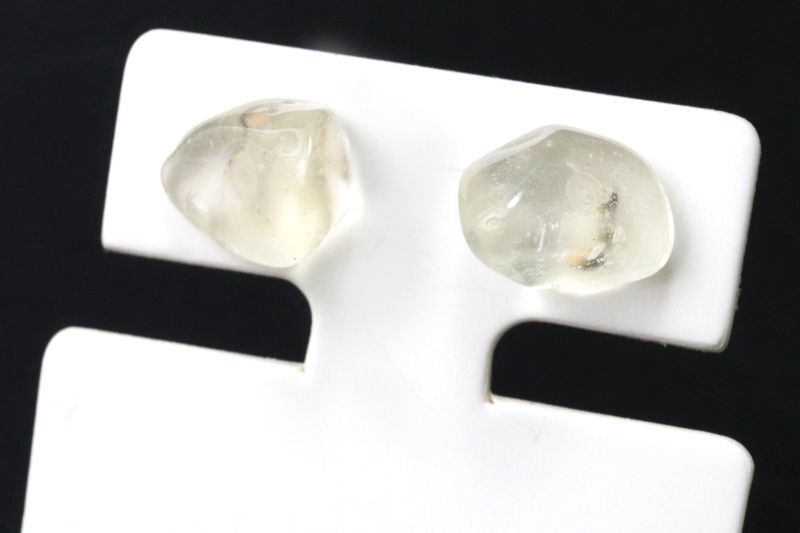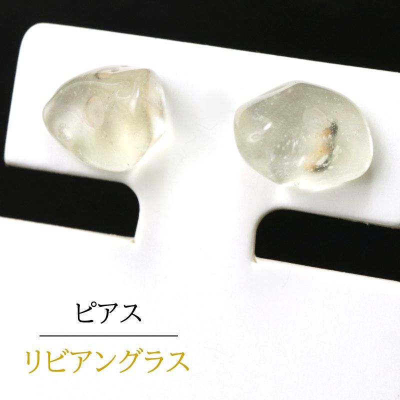 リビア砂漠産のリビアングラスの突き刺し型のピアスです。