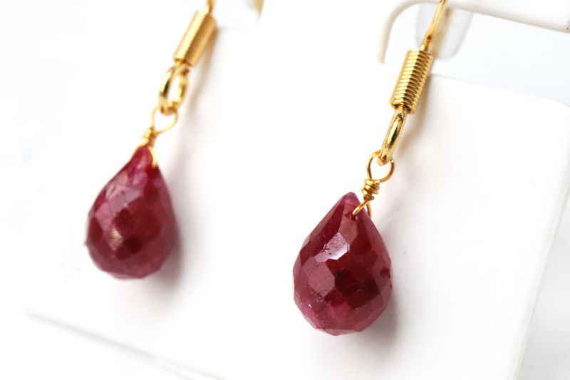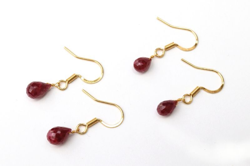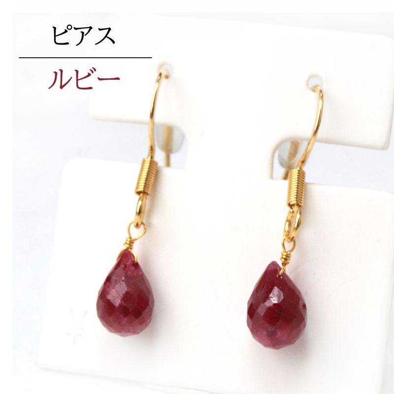 ピアス ルビー <インド産> フック型 ゴールド ステンレス 日本製 [ac-g2154]