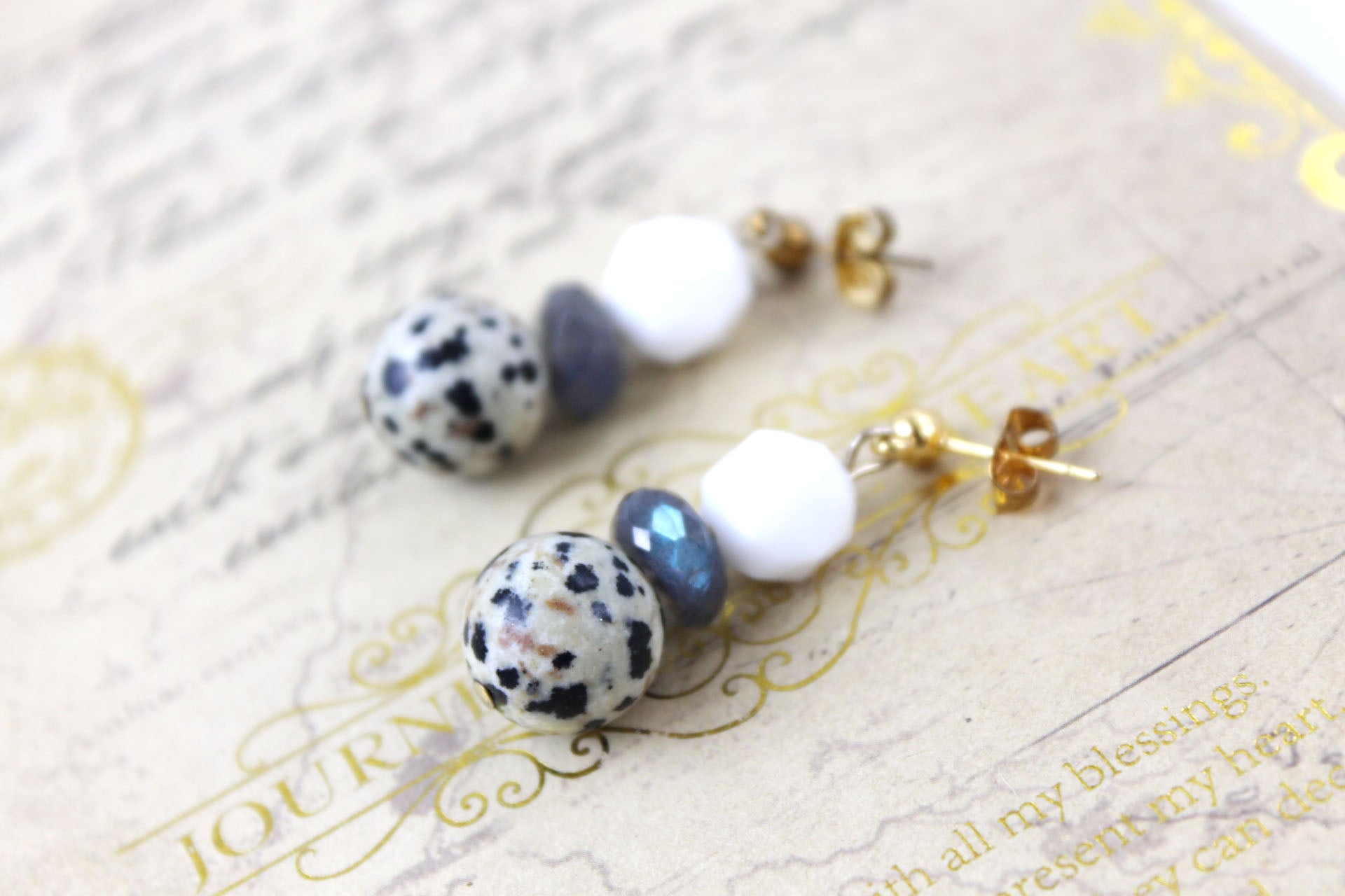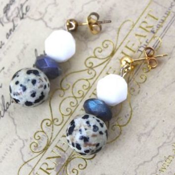 天然石使用デザインピアス ホワイトオニキス×ラブラドライト×ダルメシアンジャスパー [ac-g2158]