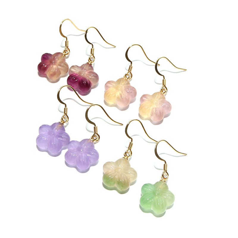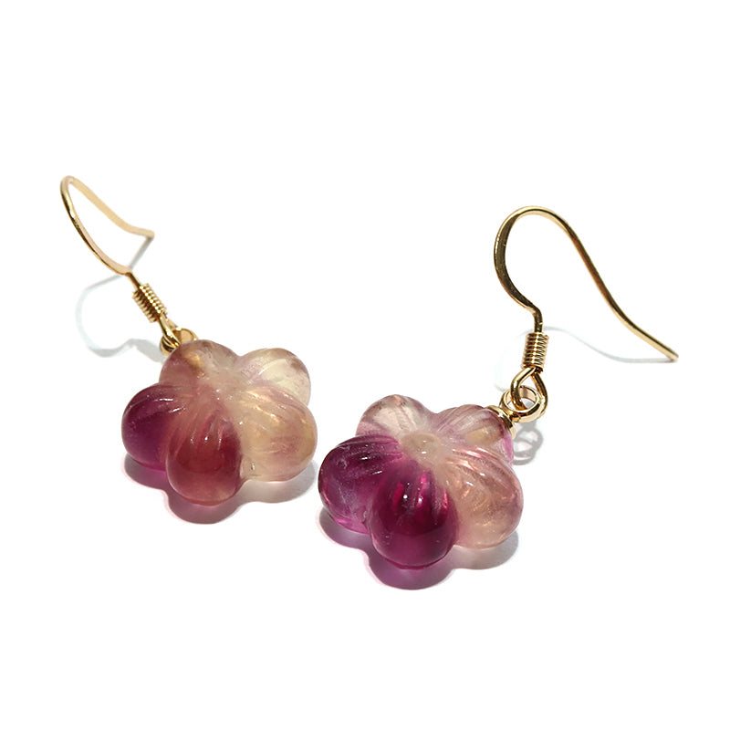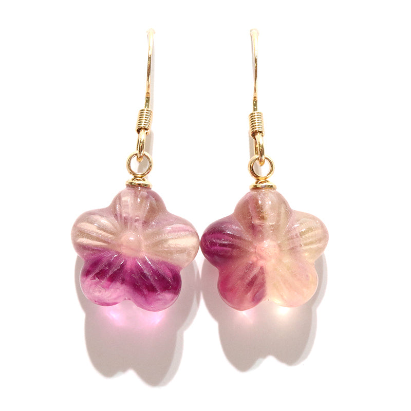 ピアス フローライト お花 フック型 ステンレス ゴールド 日本製 [ac-g2160]