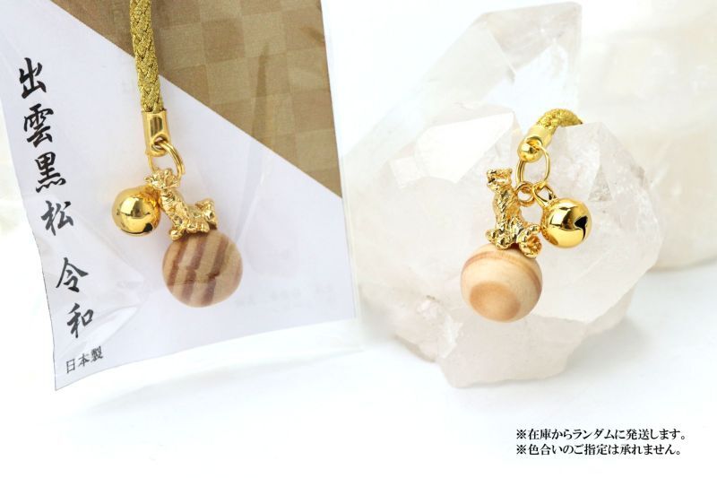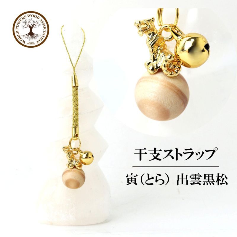 干支の寅(とら)のタイガーアイ・ルチルクォーツ・出雲黒松の干支ストラップです。