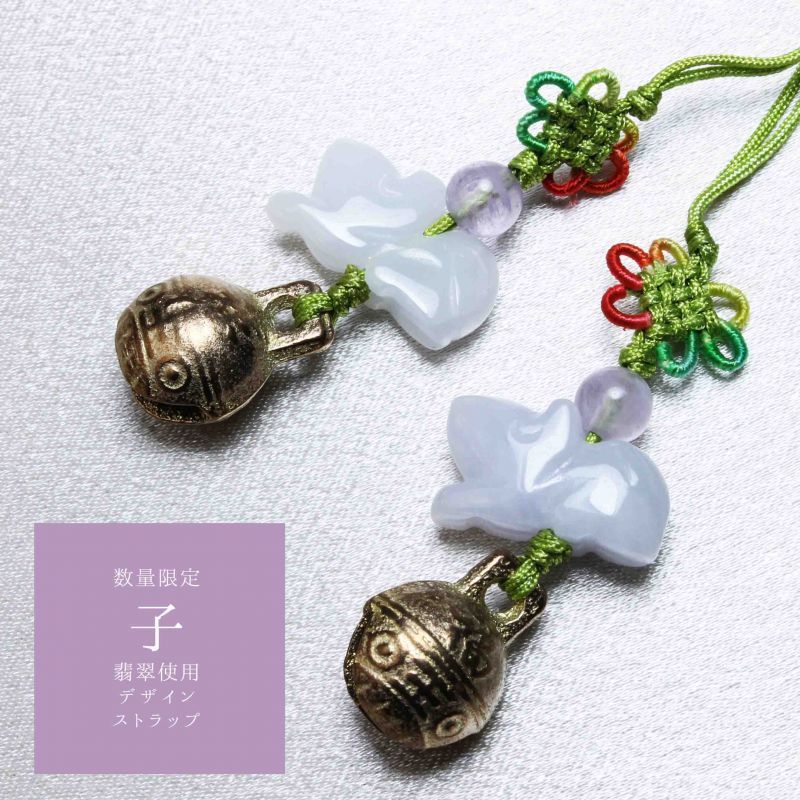 オリジナルデザインストラップ 子(ねずみ) ヒスイ 鈴つき [ac-g5057]