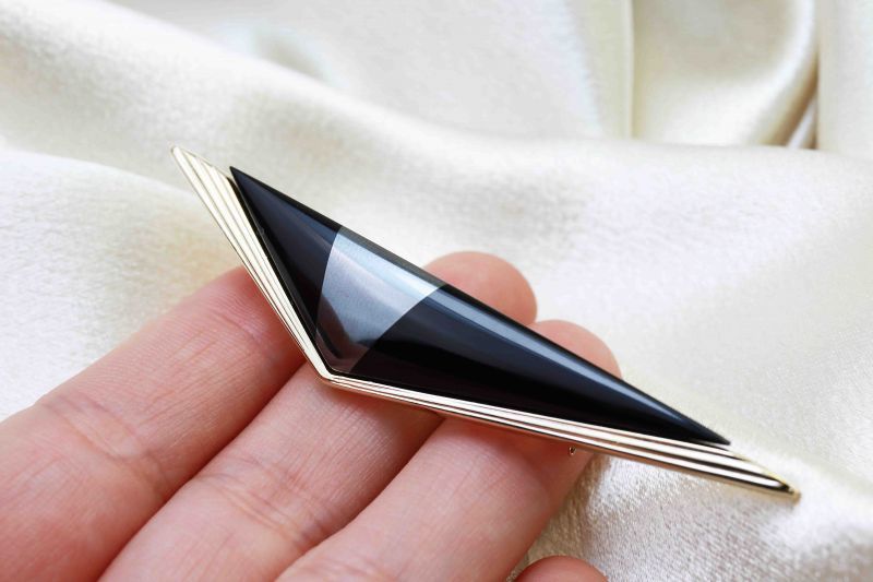 ブローチ オニキス×ヘマタイト 三角デザイン [ac-g5069]