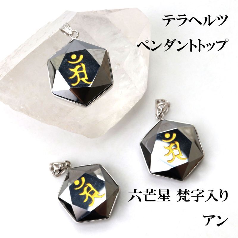 高純度のテラヘルツ鉱石から切り出した梵字入りの六芒星のペンダントトップです。