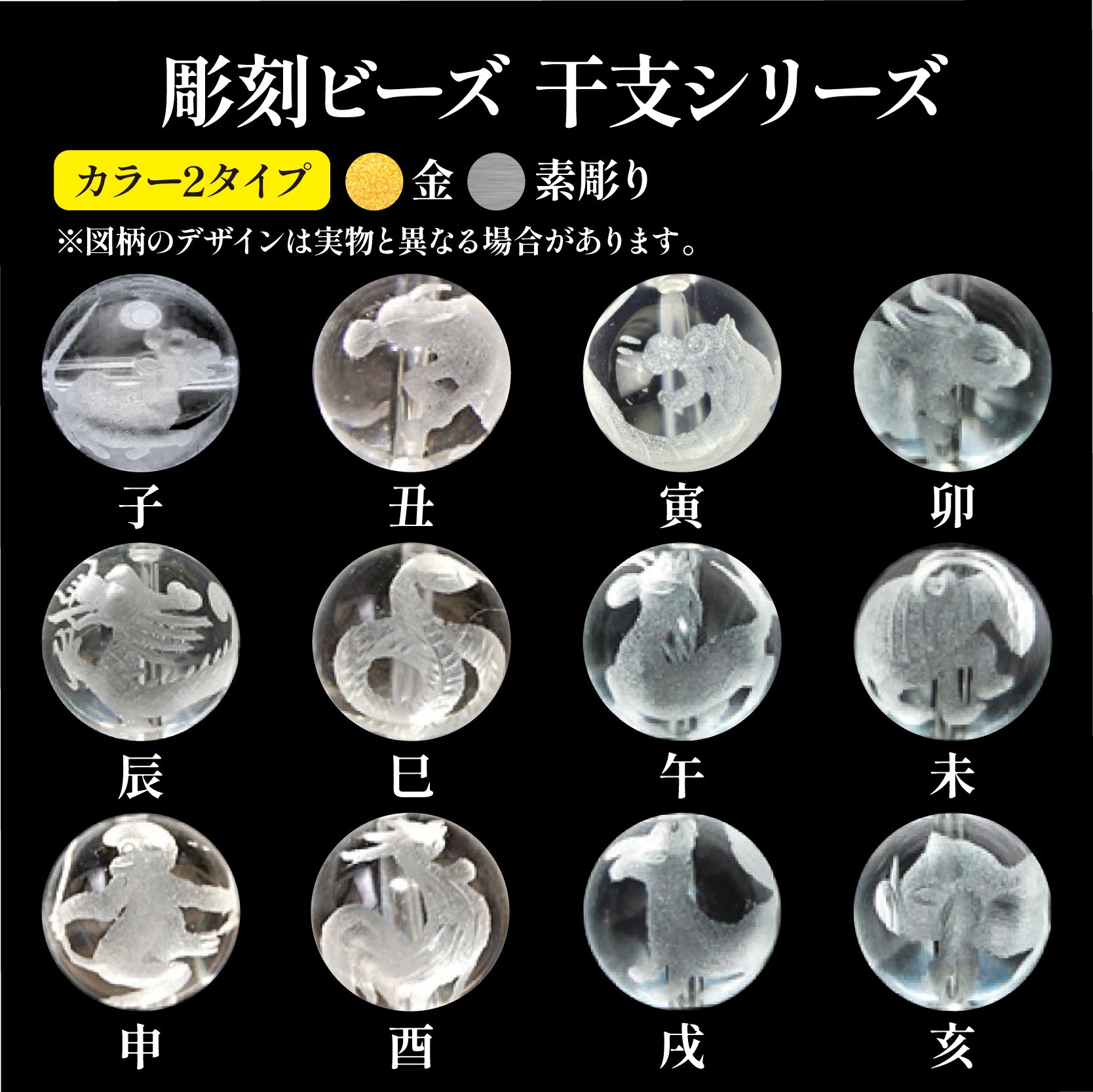 彫刻ビーズ 干支 水晶 丸 [be-g0057]