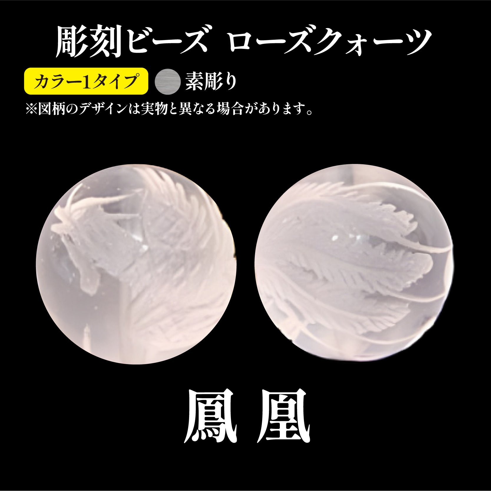 彫刻ビーズ 鳳凰(素彫) ローズクォーツ 丸 [be-g0093]