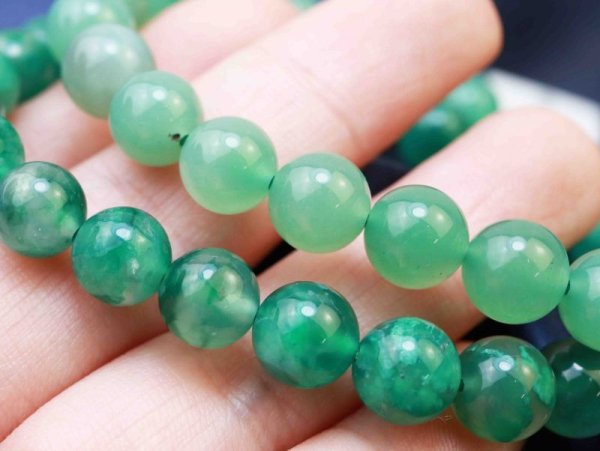 ブレスレット グリーンカルセドニー 鑑別済み 天然 丸 [br-g0274]