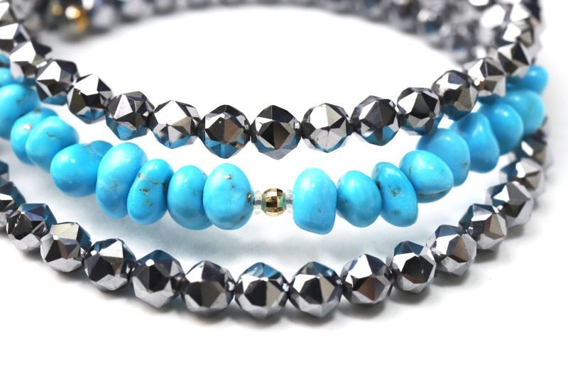 (テラヘルツ)スターカット約3mm、(スリーピングビューティターコイズ)粒約4.4mmから6mm