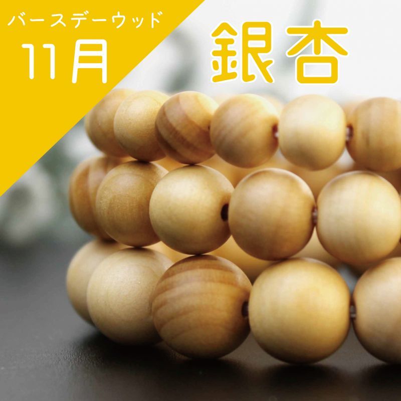 【パワーズウッド】ブレス 11月の誕生木 銀杏(いちょう) 丸 [br-g9002]