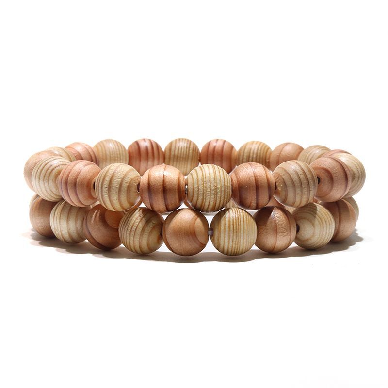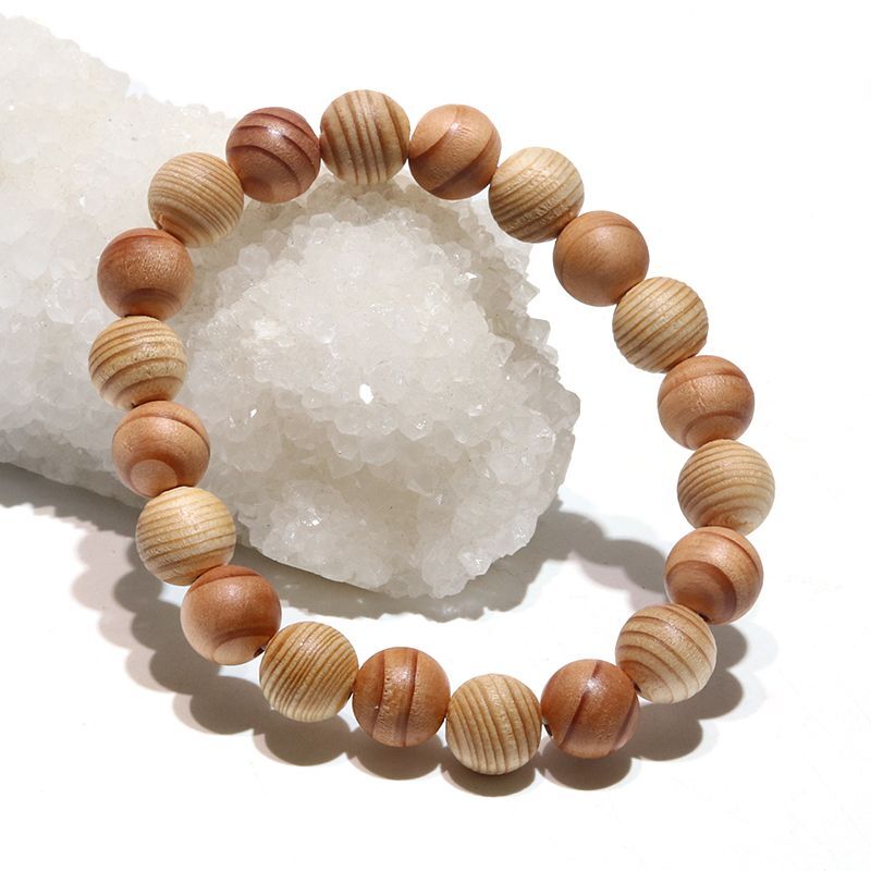【パワーズウッド】ブレス 熊野本宮杉 <和歌山県本宮産> (白×茶) 目なし 丸 [br-g9040]