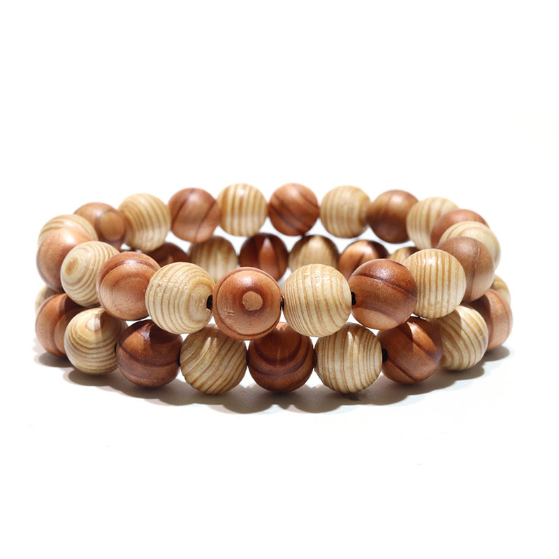 【パワーズウッド】ブレス 北山杉 <京都府産>(茶×白) 丸 [br-g9084]