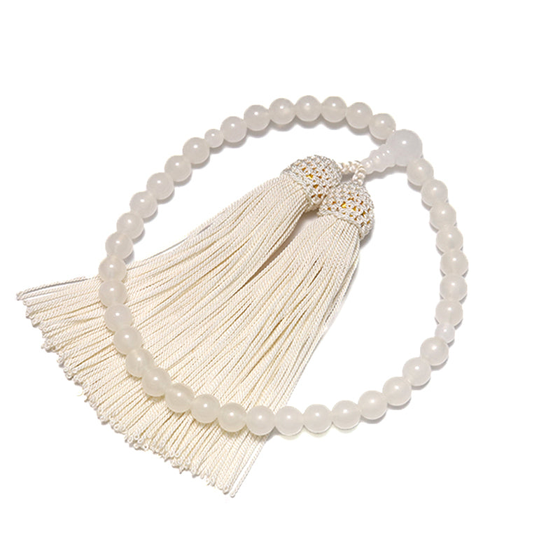御念珠 ホワイトカルセドニー約8mm 女性用 日本製 [co-g0147]