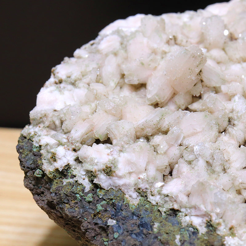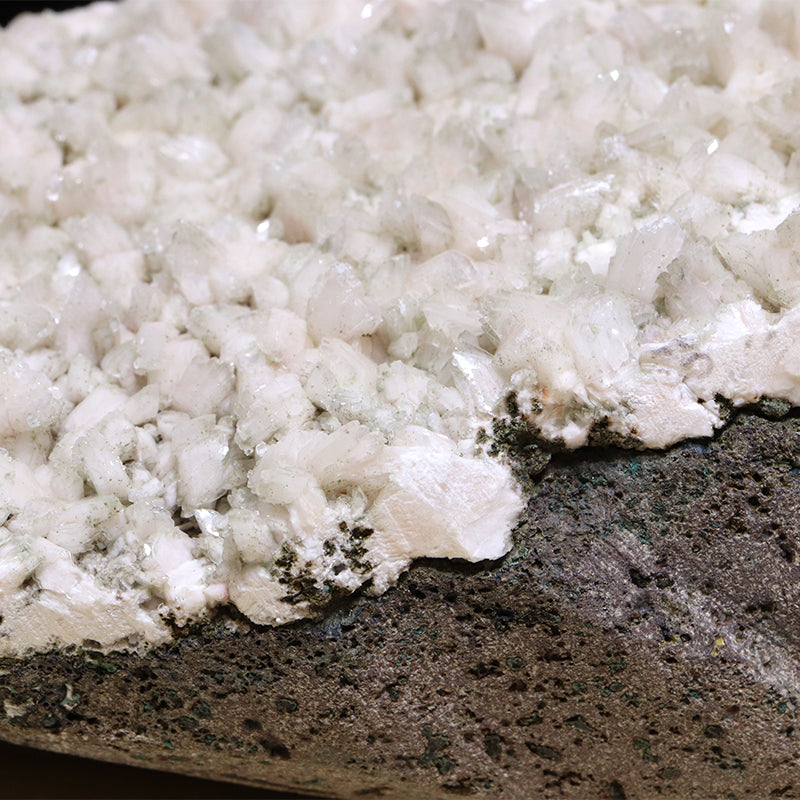 ギリシャ語の「葉のように簡単に剥がれる」という意味の言葉から名が付けられたアポフィライトは加熱すると水分がなくなり、剥がれるように割れてしまいます。