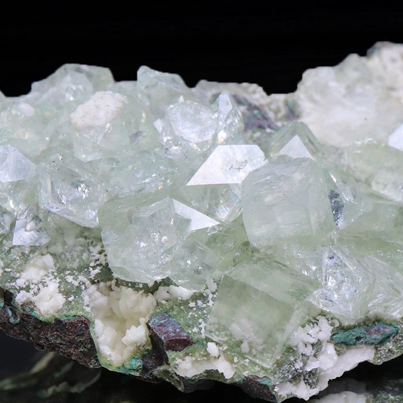 ギリシャ語の「葉のように簡単に剥がれる」という意味の言葉から名が付けられたアポフィライトは加熱すると水分がなくなり、剥がれるように割れてしまいます。