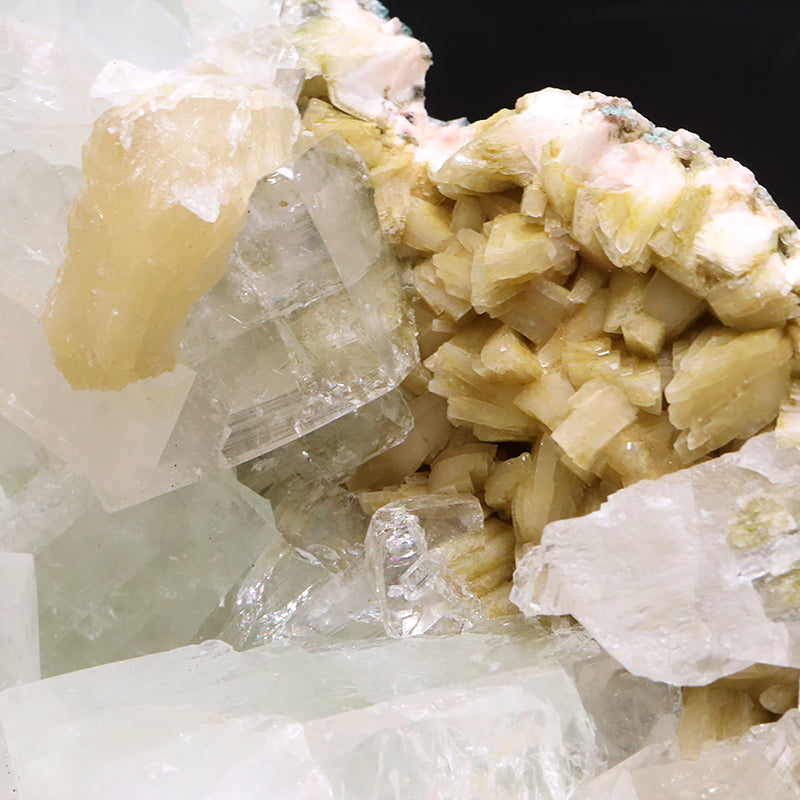 ギリシャ語の「葉のように簡単に剥がれる」という意味の言葉から名が付けられたアポフィライトは加熱すると水分がなくなり、剥がれるように割れてしまいます。