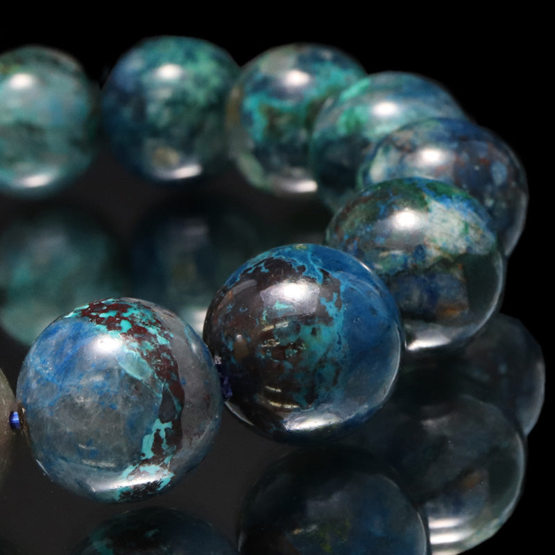 クリソコラの元々の色は鮮やかなブルーですが、そこにマラカイトやアズライトが混ざるとグリーンや濃いブルーになると言われていますクリソコラは持ち主に幸福や繁栄をもらたすといわれ地球のエネルギー持つヒーリングストーンといわれています。