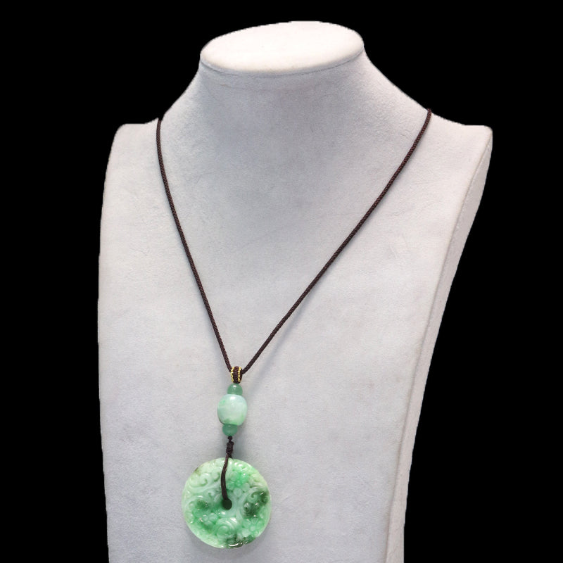【現品限り】ネックレス 天然翡翠<ミャンマー産> 花模様 [co-g0703]