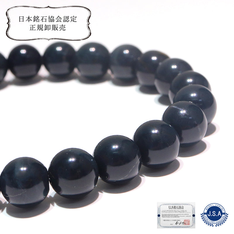 【日本銘石】ブレス 神居古潭<北海道産> 高品質 ブルー系 丸 [co-g0787]