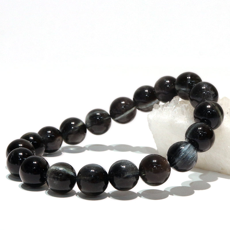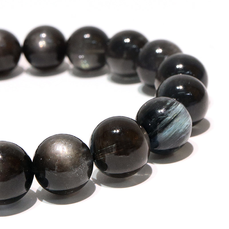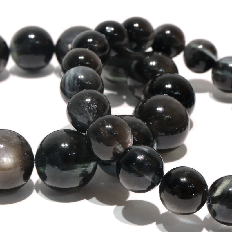 ブレス 高品質ブラックアクアマリン<ブラジル産> 丸 [co-g0820]