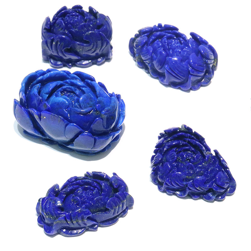 天然石パーツ ラピスラズリ<アフガニスタン産> お花 牡丹 貫通穴 [co-g0896]