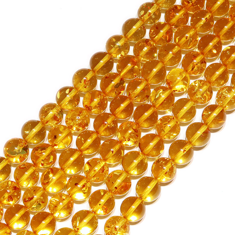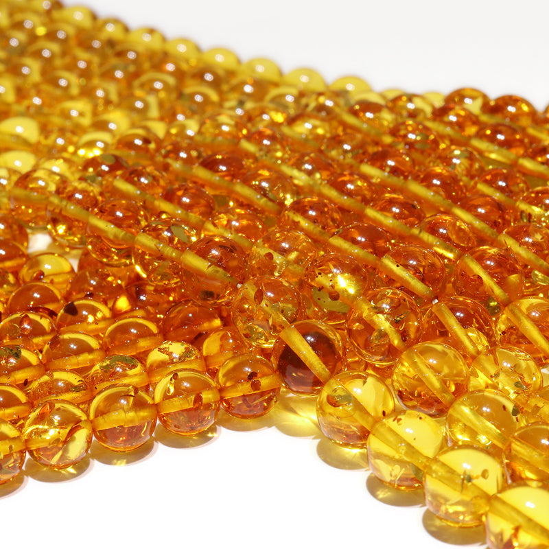 連 フラワーアンバー<リトアニア/バルト海産> グリッター入り 丸 [co-g0902]