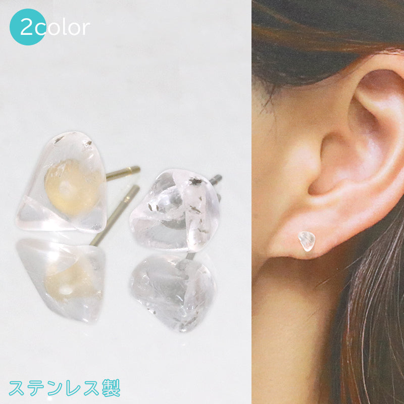 【対象商品10点以上ご購入で30%OFF/決済時に自動割引】ピアス フェナカイト<ロシア産> さざれ 約5~10mm 突き刺し型 ステンレス製 [co-g0912]