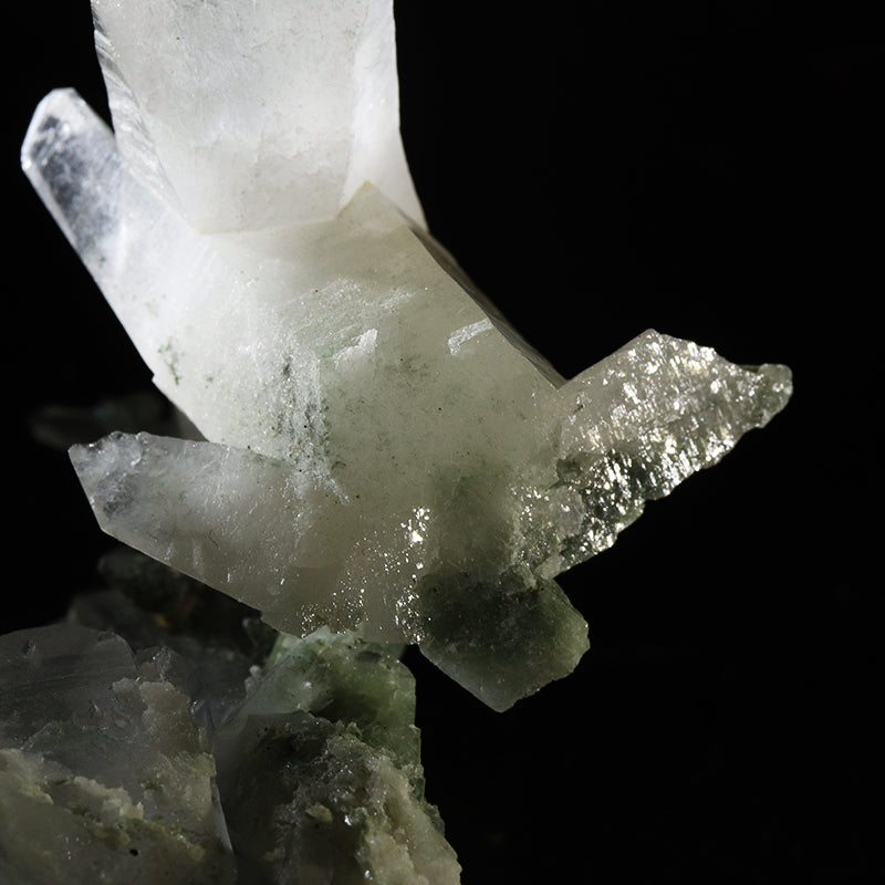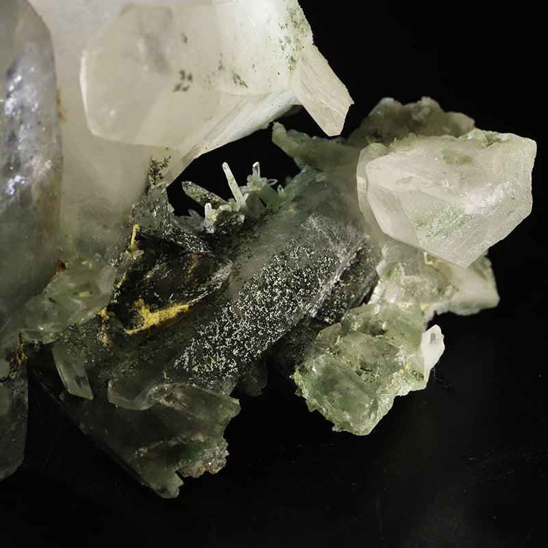 マニハール産ヒマラヤ水晶にはアナテースと呼ばれる黒い粒状の鋭錐石が 付着しているものもあり、クローライトを伴う産地では他に無い特徴です。