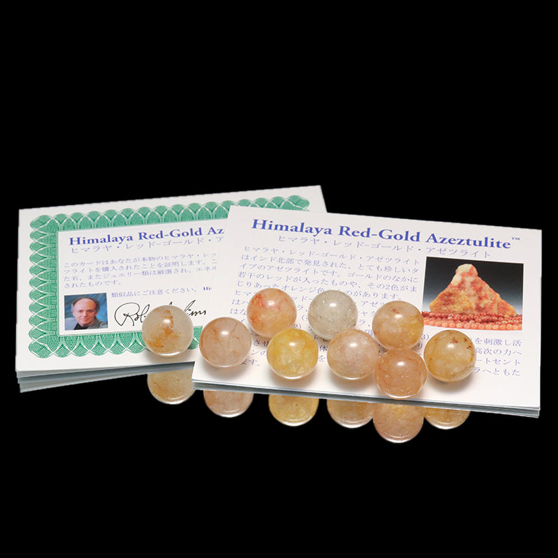 ヒマラヤレッド-ゴールドアゼツライトは、硬度7のとても珍しいタイプのアゼツライトに与えられた名前です。北インドで発見され、ほとんどが赤みがすこし入ったゴールド色、もしくはゴールドとレッドのまじりあった色合いをしています。 ハートとクラウンチャクラと同様に、ルートチャクラ、性・クリエイティブチャクラ、太陽神経叢チャクラをとてもパワフルに刺激し活性化します。グレートセントラルサンのスピリチュアルなエネルギーへと、身体を覚醒、変容させ、その光を身体の内側へもたらします。 ヒマラヤレッド-ゴールドアゼツライトは第1~第3チャクラの機能を高め、そのエネルギーセンターを霊的な光で満たし、もっとも高次の活動へと導きます。「プラナ=生命エネルギー」をわたしたちに与え、健やかさや強さと活力を高めます。創造性を刺激し、高次元の世界からのインスピレーションが降り注ぐのを促します。この波動は、性活動におけるスピリチュアルなレベルを活性化し、パートナーの内側に神聖な存在を見出すことができる霊的なエクスタシー状態をもたらすでしょう。また、第3チャクラの意志の力も刺激し、ものごとを具現化する能力を高めます。加えて、ヒマラヤレッドゴールドアゼツライトは、「豊かさ」 の石としても知られています。 この石は生命力や勇気、 創造力、意志と実現力を連携させ、豊かさを生み出す理念のパターンへと働きかけるのです。スピリチュアルな癒しの領域では、ヒマラヤレッド-ゴールドアゼツライトは、膀胱や腎臓、腸の下部など身体の再生システムに関連して使用されることを推奨されます。この石は霊的な領域へ働きかけ、病への抵抗力や、活力を高めます。感情面では、過去の虐待などの傷や、自己信頼、自信の欠如や、人生の目的に関する迷いに働きかけ霊的な癒しをもたらします。この石はすべての種類のアゼツライト、モルダバイト、リピアンゴ ールドテクタイト、クリムゾンキュープライト、 カーネリアン、ルビー と共鳴します。