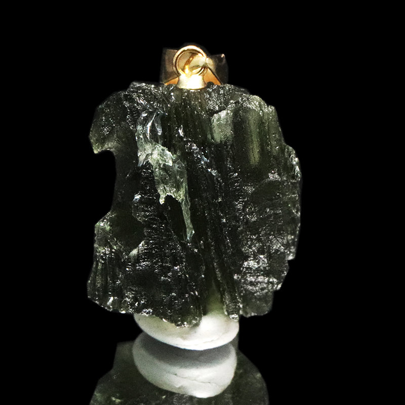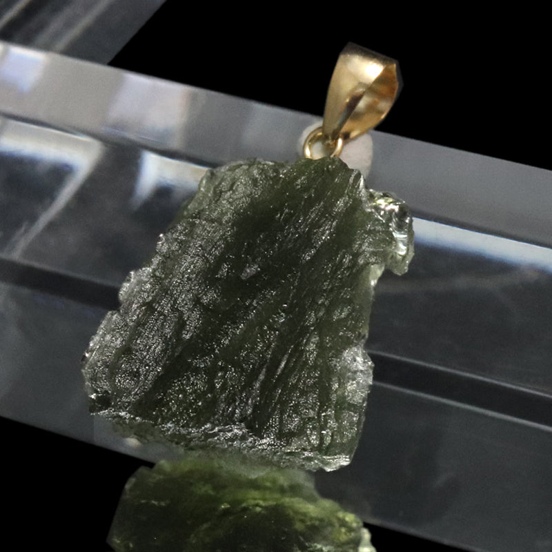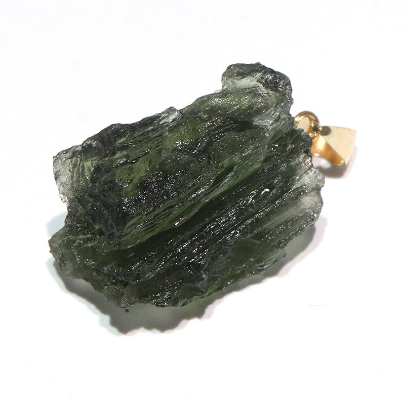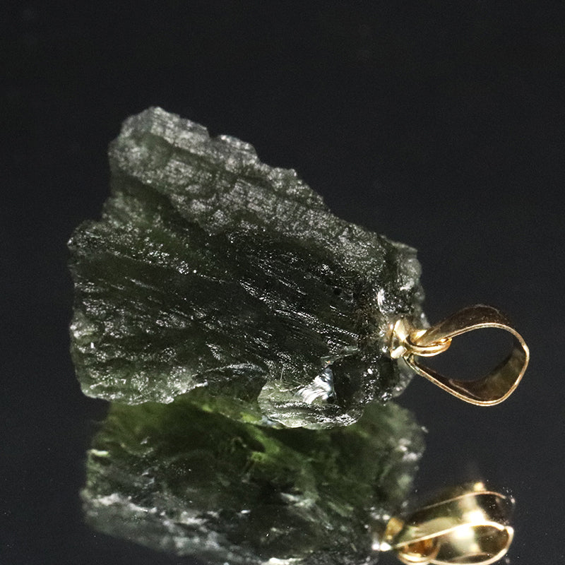 ペンダントトップ モルダバイト<チェコ産> 原石 K18 ゴールド 証明書付き [co-g1504]