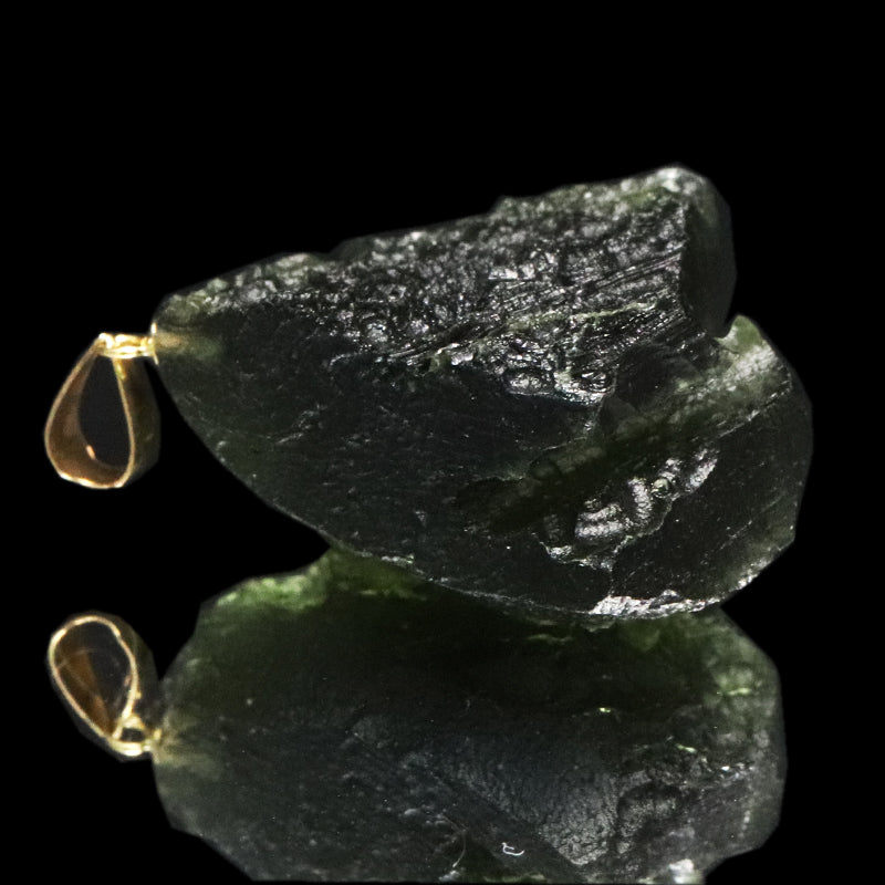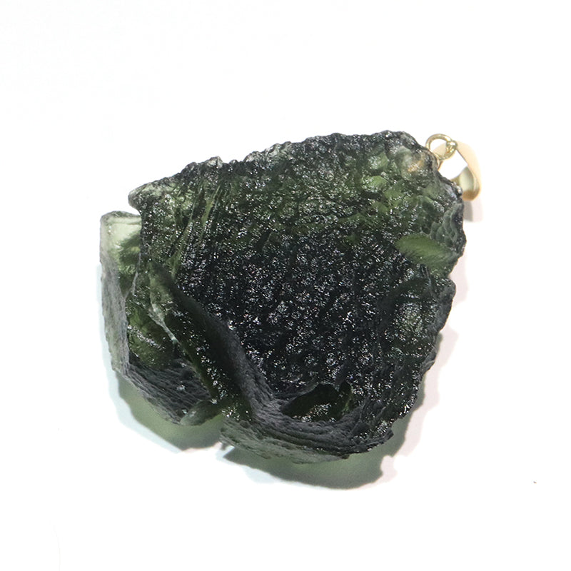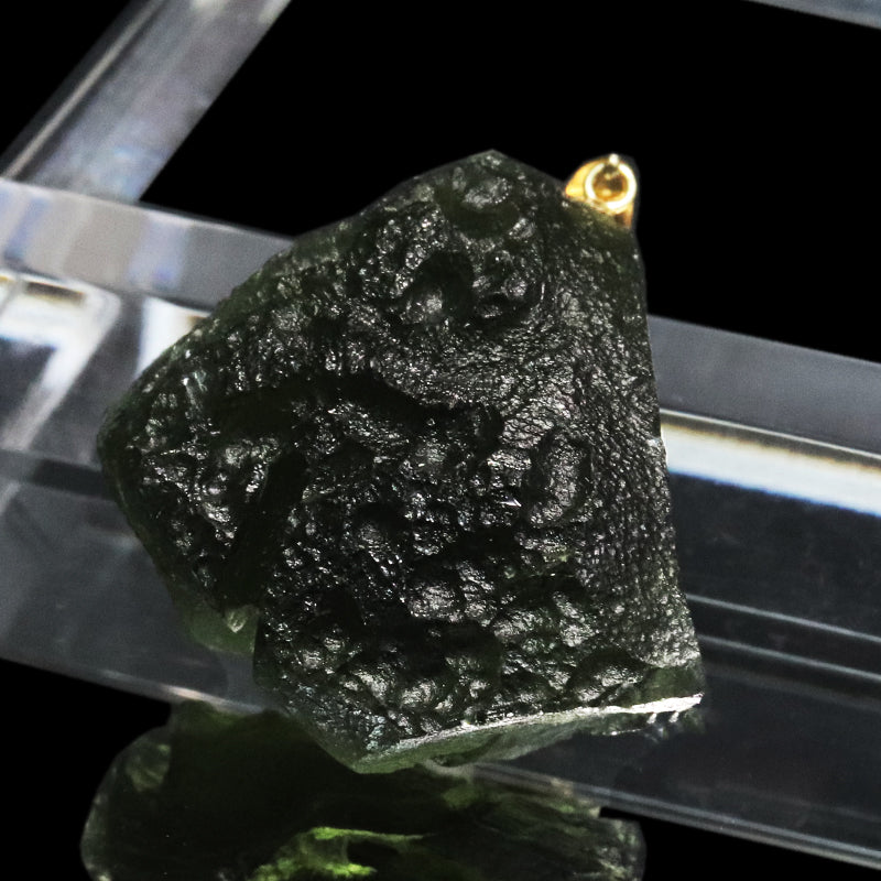 ペンダントトップ モルダバイト<チェコ産> 原石 K18 ゴールド 証明書付き [co-g1506]