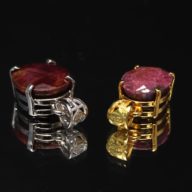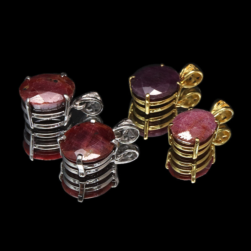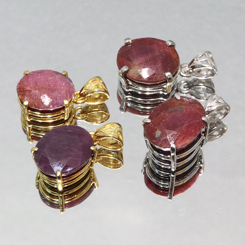 【対象商品10点以上ご購入で30%OFF/決済時に自動割引】ペンダントトップ ルビー<アフリカ産> オーバルカット 約10~12mm×約10~14mm Silver925 ランダム発送 [co-g1578]