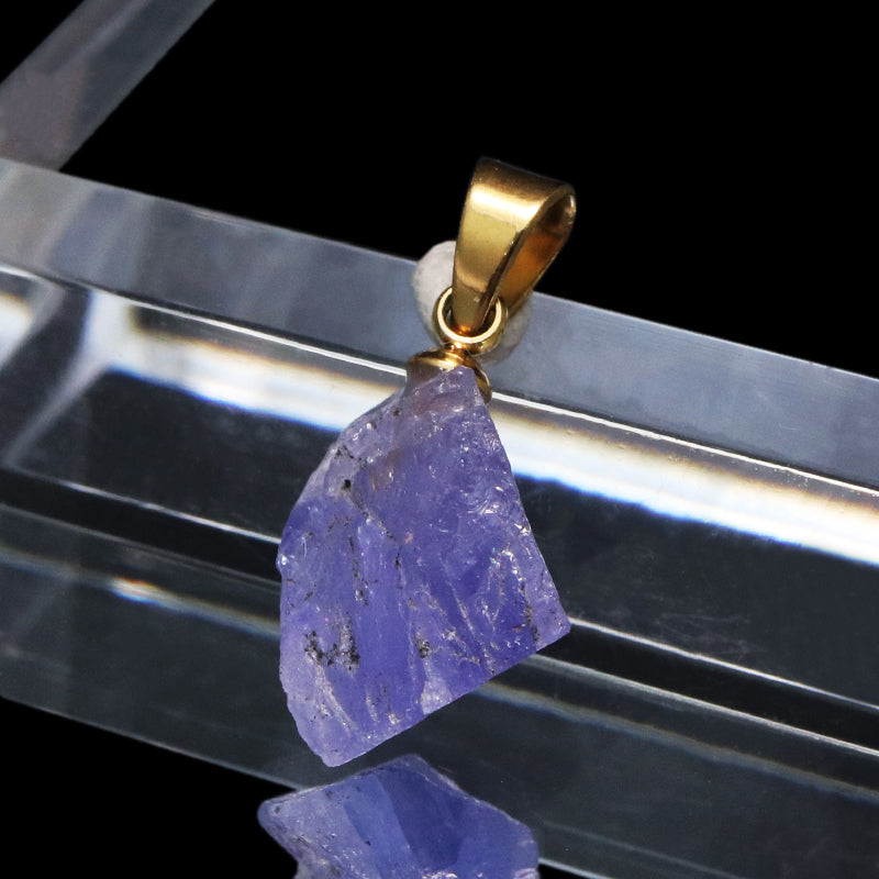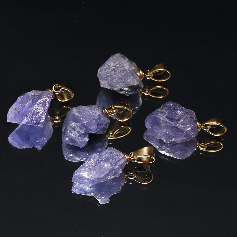 【11/30まで12月誕生石20%OFF(決済時に自動割引)】【対象商品10点以上ご購入で30%OFF/決済時に自動割引】ペンダントトップ タンザナイト<北海道産> 原石 約8~16mm ステンレス製 ゴールド ランダム発送 [co-g1628]