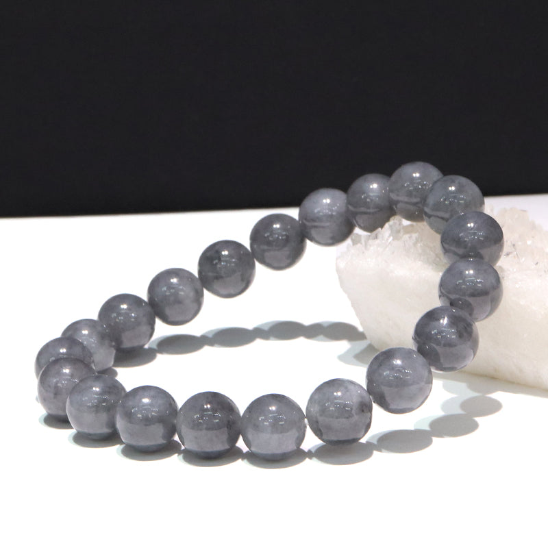 【日本銘石】ブレス 糸魚川翡翠<新潟県産> グレー 丸 [co-g1647]