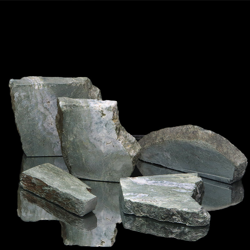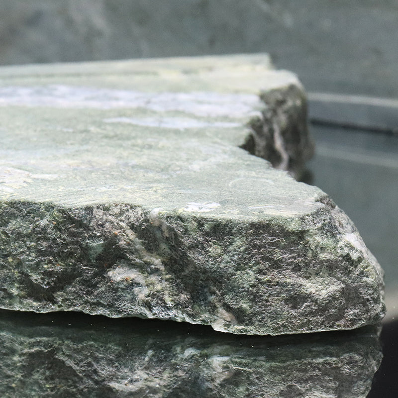 群馬県の深い谷にある石で、緑の原石には白いさざ波のような模様が入っているのが特徴です。