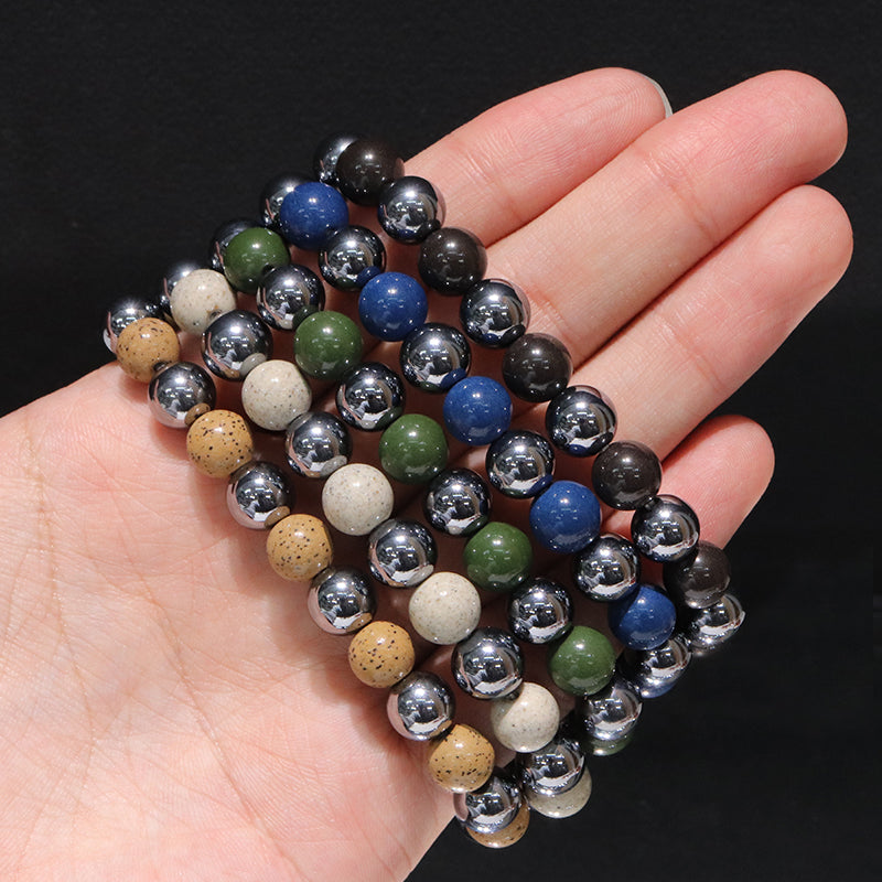 【ことほぎ】健康美ブレスレット テラヘルツ×北投石(白、黄灰、黒、青、緑) 丸 全20種 日本製 [co-g1664]