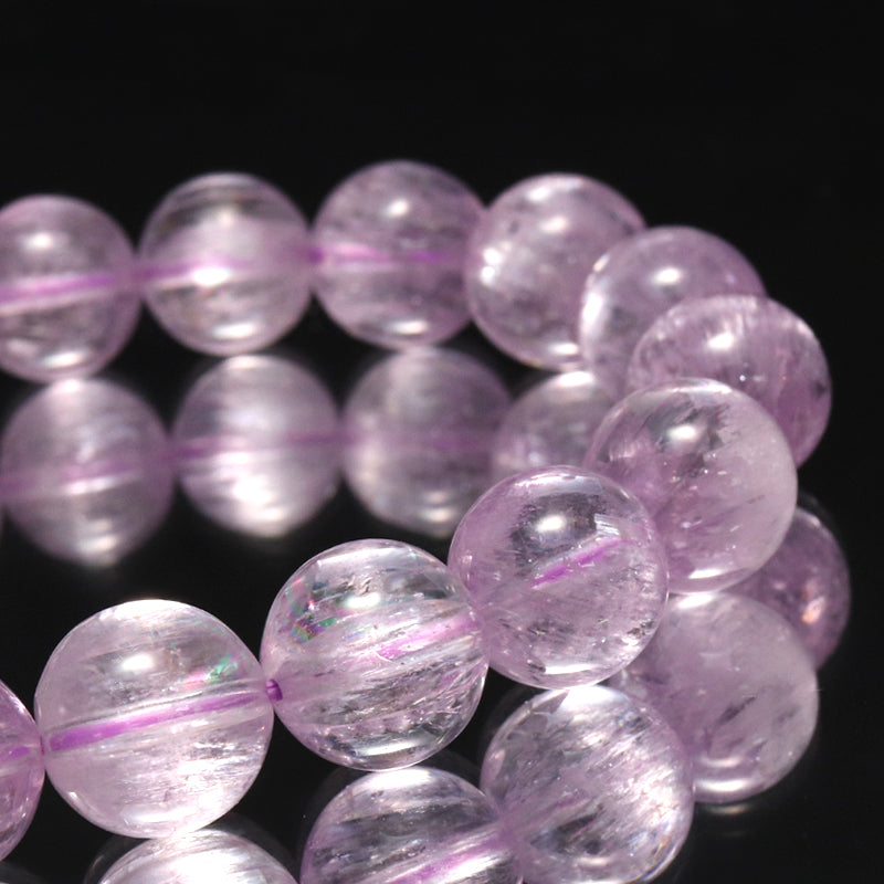 アイリスクンツァイトは、淡いピンクのクンツァイトの中に、光が当たると虹色の輝きが現れる特別なタイプのクンツァイトです。