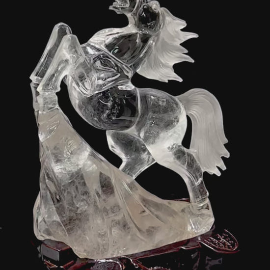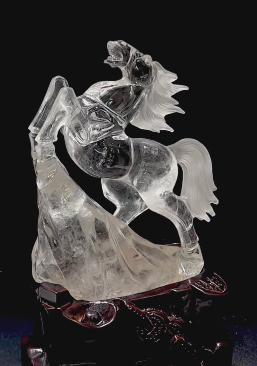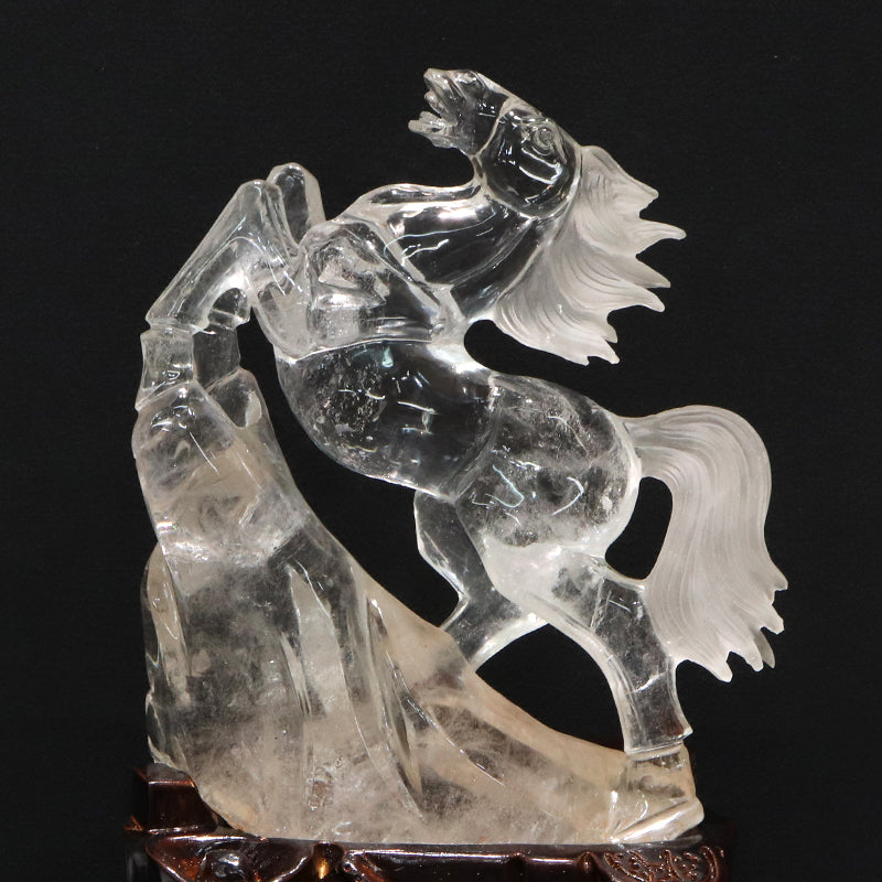 【一点物】【動画あり】情熱と飛躍を呼び込む、ブラジル産 水晶 馬の彫り物