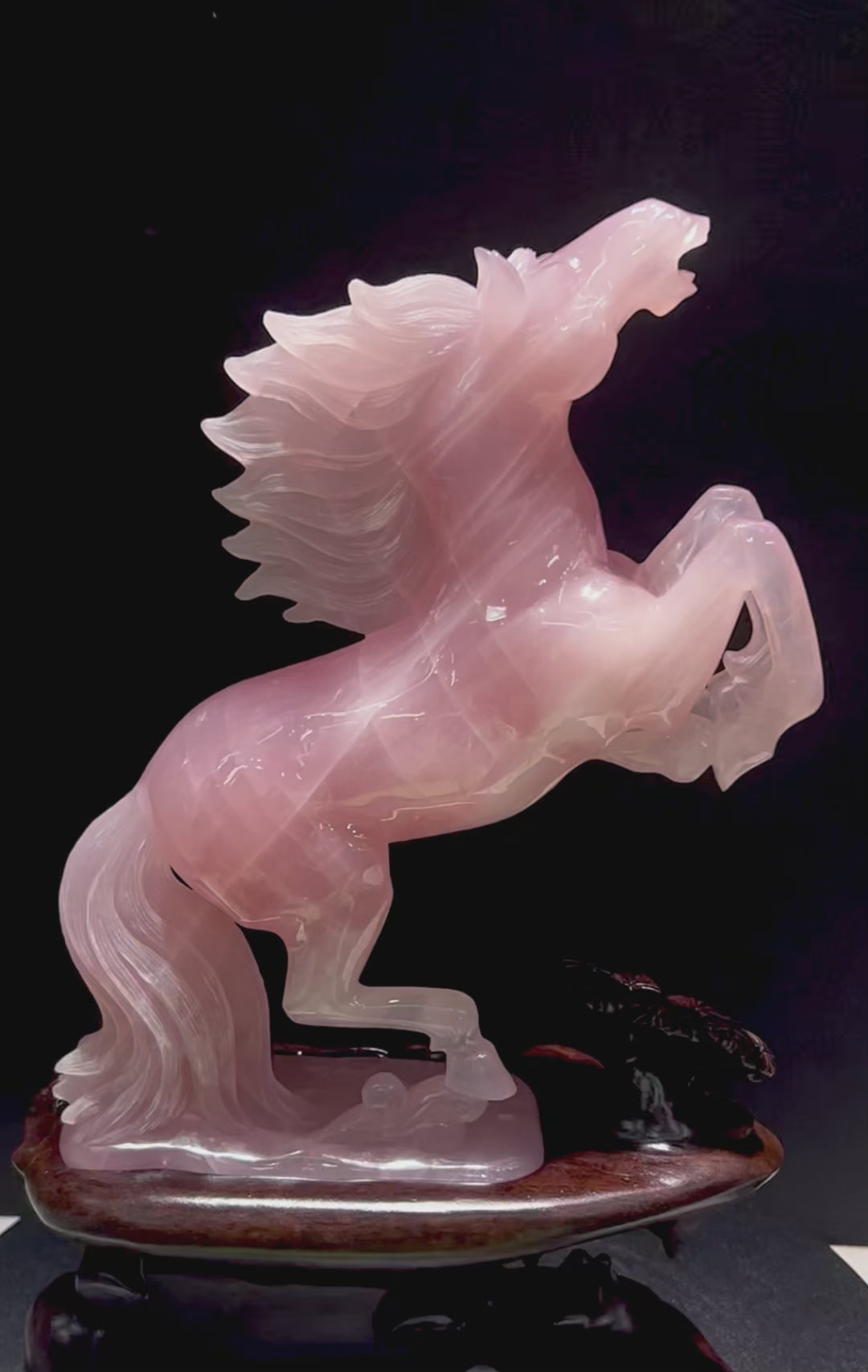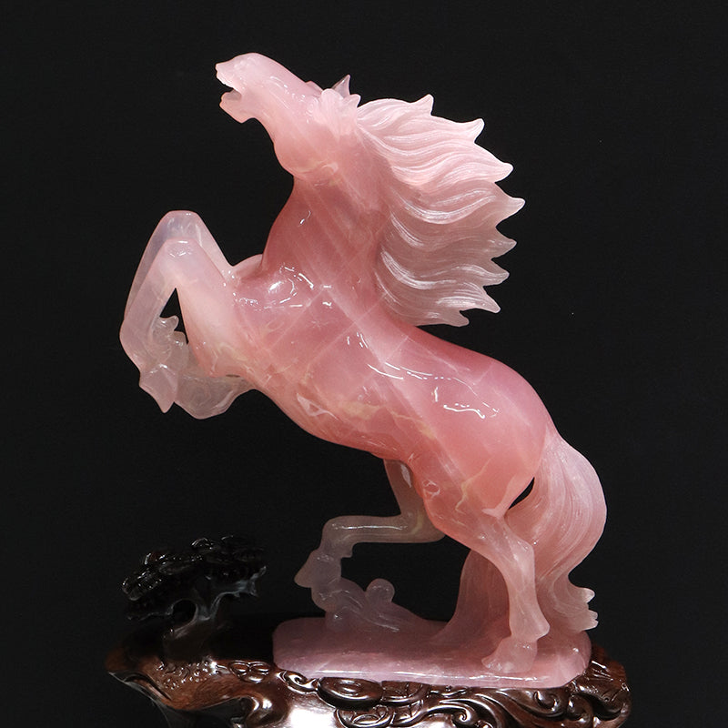 世界にひとつだけのディープローズクォーツ 馬の彫り物を、