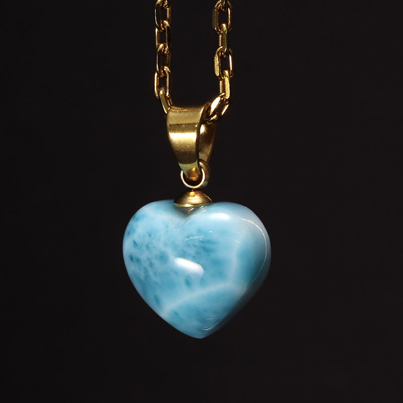 【1/19まで水瓶座星座石20%OFF(決済時に自動割引)】ペンダントトップ ラリマー<ドミニカ産> ハート型 約10.5~12.5mm×約10~11mm 垂直タイプ ステンレス製 [co-g1747]