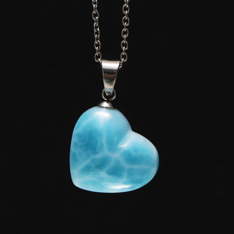 身につける人の心をやわらかく守り、大切な人との関係を深め、温かな絆を育む力があるといわれ、アクセサリーとして人気の高い形です。■ ラリマー × ハート の相乗効果