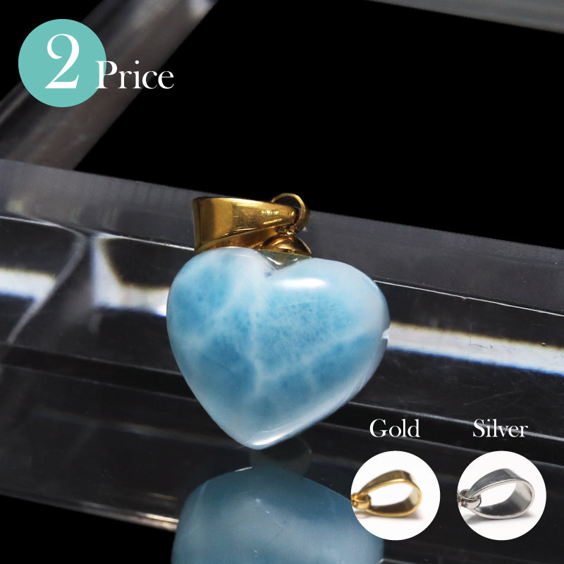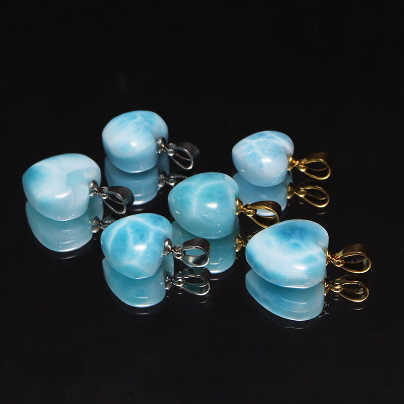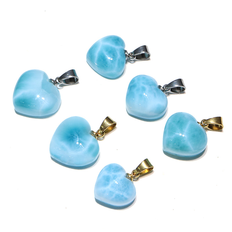 【1/19まで水瓶座星座石20%OFF(決済時に自動割引)】ペンダントトップ ラリマー<ドミニカ産> 小 ハート型 約12~14.5mm×約11~13.5mm 垂直タイプ ステンレス製 [co-g1751]