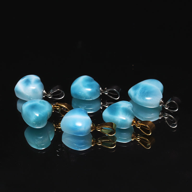 【1/19まで水瓶座星座石20%OFF(決済時に自動割引)】ペンダントトップ ラリマー<ドミニカ産> ハート型 約11~13mm×約10~13mm 斜めタイプ ステンレス製 [co-g1753]