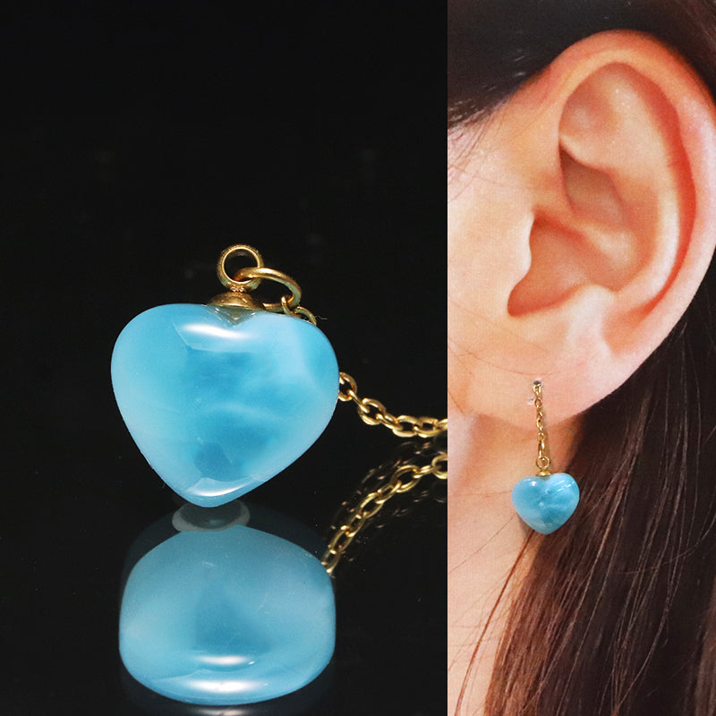 身につける人の心をやわらかく守り、大切な人との関係を深め、温かな絆を育む力があるといわれ、アクセサリーとして人気の高い形です。■ ラリマー × ハート の相乗効果