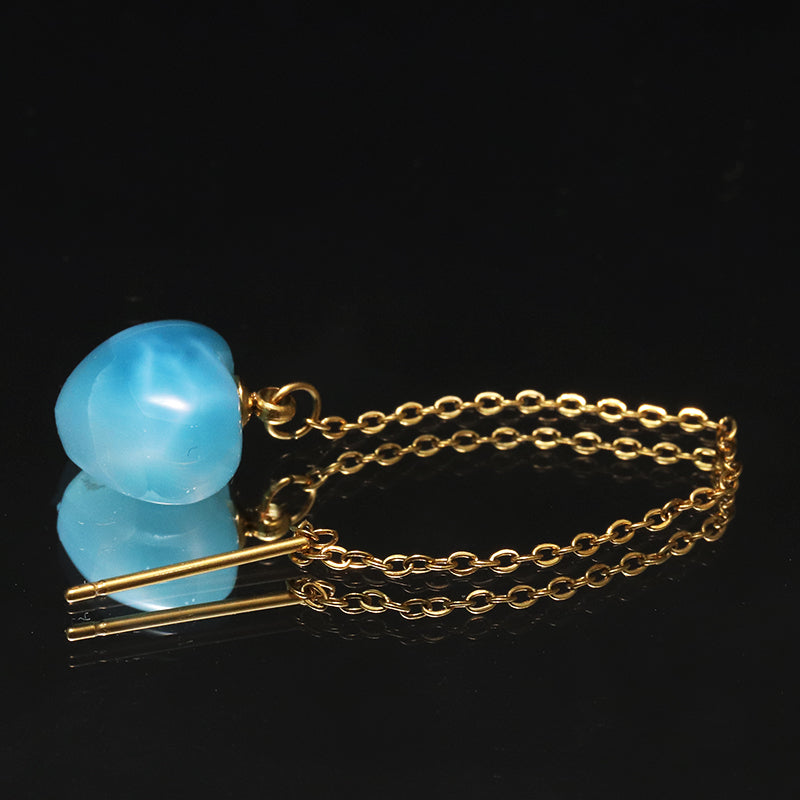 片耳ピアス ラリマー<ドミニカ産> ハート型 アメリカンチェーン ゴールド ステンレス製 [co-g1774]