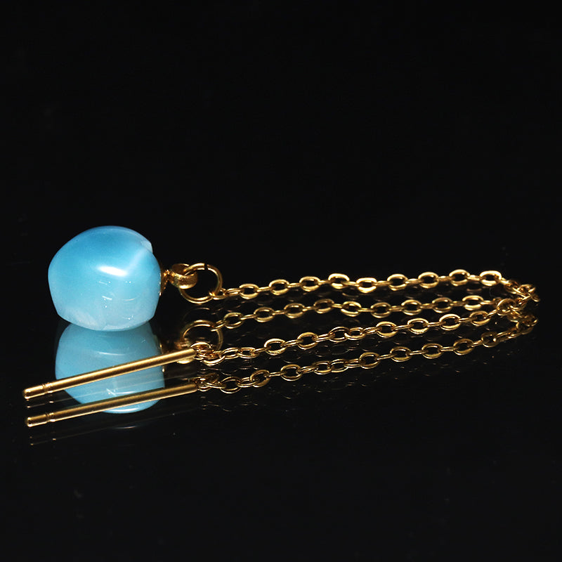 片耳ピアス ラリマー<ドミニカ産> ハート型 アメリカンチェーン ゴールド ステンレス製 [co-g1775]