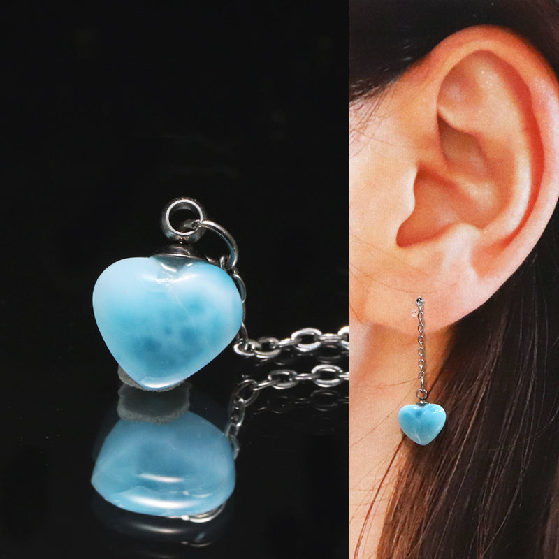身につける人の心をやわらかく守り、大切な人との関係を深め、温かな絆を育む力があるといわれ、アクセサリーとして人気の高い形です。■ ラリマー × ハート の相乗効果